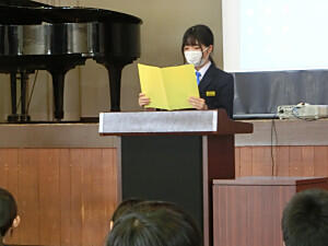 PTA会長様より講評をいただき、最後は、実行委員のあいさつで締めくくりました。