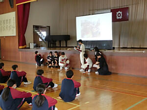 今回の校長講話は、被爆された佐々木貞子さんについてです。戦争や平和についての話を聞き、これから自分たちが何をしていくべきなのか考えるお話でした。