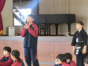 11日の夜には、太々神楽の1回目の練習が行われました。はじめなので説明の後、基本のあいさつの仕方を学び、その後練習に入りました。さすがは2・3年生、久しぶりの踊りでしたが、ほぼ完璧に踊っていました。1年生も笛や太鼓、踊りの練習に参加し、熱心に覚えようと頑張っていました。今年も学校祭で発表します。皆さん楽しみにしていてください。