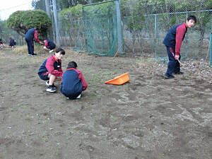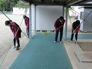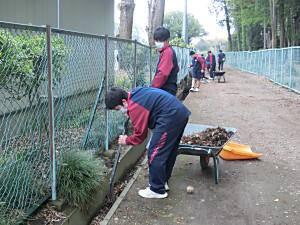 放課後の全校美化は、武道館やプールの周り、バックネット付近の除草や落ち葉はきを行いました。前回のPTA親子奉仕作業できれいになっていたので、あっという間に除草も終わりました。