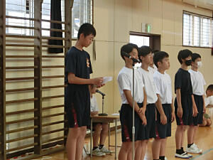 本日から2学期が始まりました。始業式の校長講話では、2学期に力を入れてほしい2つのこととして、「相手の考えを受け止める」「いろいろなことに進んで挑戦する」。もちろん日々の学習をおろそかにしないようにという話もありました。その後は、各学年代表の2学期の抱負の発表がありました。