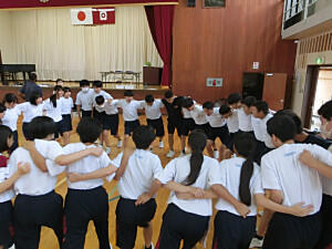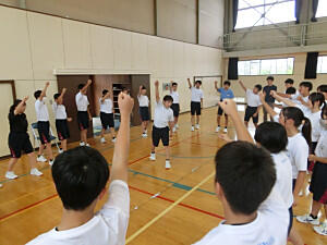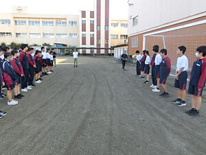 本日は、体育委員会による生徒朝会でした。運動会に向けて、いろいろ準備をしています。今回は、種目案の募集や運動会に向けての準備、スローガンなどたくさん説明しました。最後に、体を動かすことを推進しようと、みんなでダンスしました。