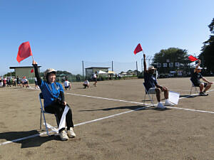 徒競走が始まりました。1年生から順に3年生まで全員が走りました。赤か白の旗が揚がると走るコースが決まります。運も味方につけて走ることができたのか。結果はいかに!