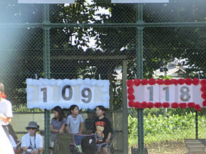 徒競走が終わって、白109点、赤118点の接戦です。