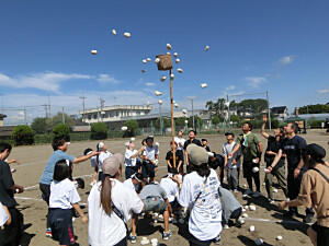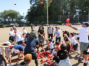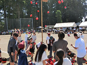 玉入れ合戦がはじまりました。親子の団体種目です。みんなで協力して頑張りました。