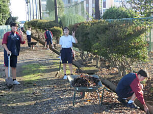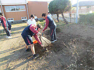 本日は全校美化でした。今回は、校舎南側や校庭などの除草やカイヅカイブキの剪定を行いました。