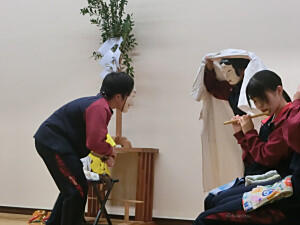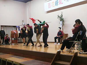 長沼八幡宮永代太々神楽が行われました。今年もたくさんの生徒が参加し、3つの演目を行うことができました。はじめに「五行の舞」、次に「鬼女の舞」、最後は「天狐の舞」です。天狐の舞では、紅白の餅が撒かれ会場が盛り上がりました。