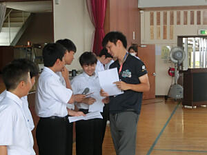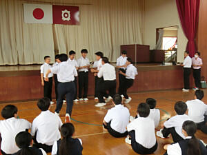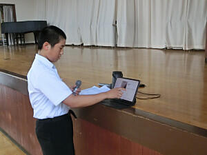 本日の朝会は、校長講話をリモートで行いました。今回は、現在、海外交流しているオーストラリアについて、英語で説明しました。オーストラリアの英語の質問に、生徒たちもしっかり答えることができました。その後は、学校評価アンケートで、生徒からいくつかの質問があったので、生徒指導主任より対応についての話がありました。