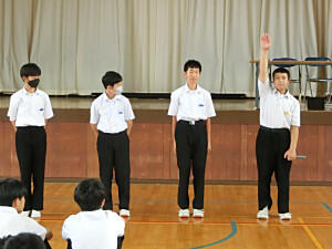 今日のお昼休みの演説は、生徒会長候補の3人でした。しっかり学校のことを考え、発表していました。
