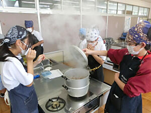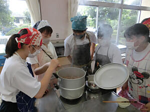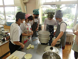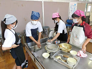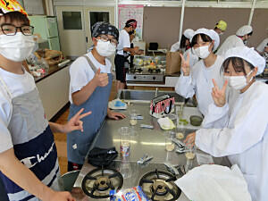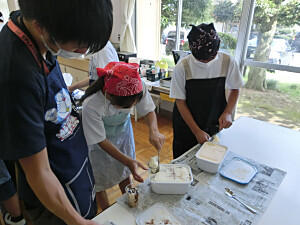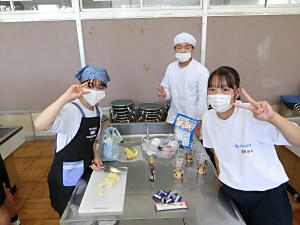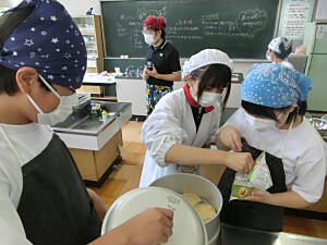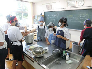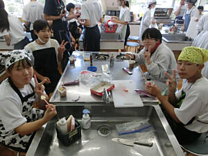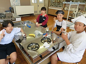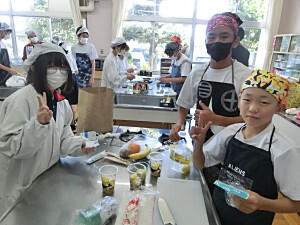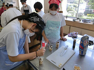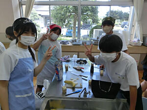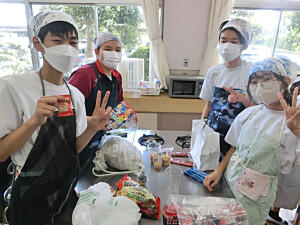 今日は、1年生のお楽しみ会です。4つの班に分かれ、それぞれ材料を持ち寄ってケーキ作りをしました。どの班も個性あふれたケーキが出来上がりました。