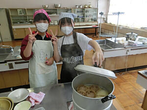 9日に行われる生徒会役員選挙のお昼の演説が行われました。給食の時間に理科室からリモート配信して行いました。今日は、1年生副会長候補の2人の発表でした。
