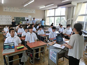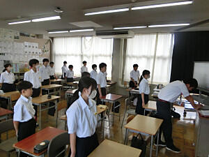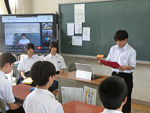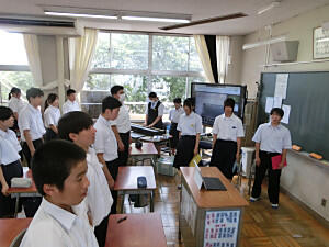 本日の朝会は、校長講話をリモートで行いました。今回は、現在、海外交流しているオーストラリアについて、英語で説明しました。オーストラリアの英語の質問に、生徒たちもしっかり答えることができました。その後は、学校評価アンケートで、生徒からいくつかの質問があったので、生徒指導主任より対応についての話がありました。