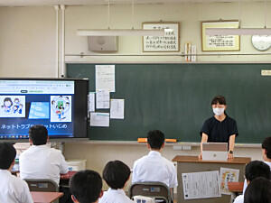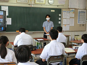 3年生の道徳で研究授業が行われました。勤労についての内容で、好きな仕事を選ぶか安定かなど、将来について考え、積極的に発表していました。その後は、グループで話し合い、発表を行いました。