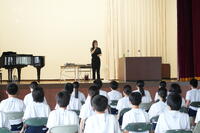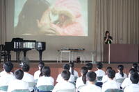 とちぎ未来大使の i-nos綾 様をお迎えして、講話をいただきました。「将来の夢」についてどう考え、実現に向けてどうしたらよいか、などを話していただきました。歌と映像が駆使された、すばらしい内容でした。