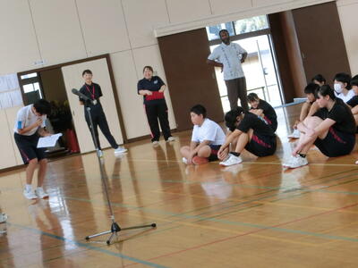 今回は、体育委員会による、運動会紅白組の決起集会でした。各組の団長として、3年生の荒山朋大さん、荒山優斗さんに選ばれていました。二人でじゃんけんをし、紅組白組が決まりました。