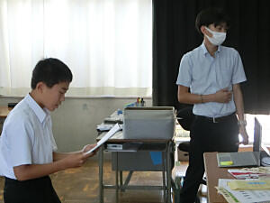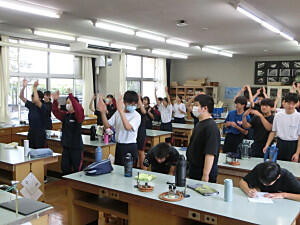 本日は、エコの会の4人の講師の方に来ていただき、出前授業を行いました。今回は、SDGsと食糧問題や二酸化炭素と温暖化などたくさんのお話や実験をしていただきました。生徒も真剣にメモをとったりするなど興味深く聞いていました。講師の皆様、大変ありがとうございました。