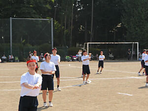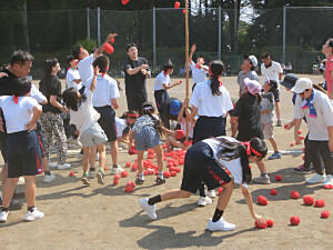 6校時に1年生のレクリエーションで、バレーボールとドッチボールを行いました。はじめに、しっかり準備運動をしてバレーボールを行いました。ネットの片付けも手際よく行い、その後はドッチボールです。最後は、みんなで記念撮影を行いました。