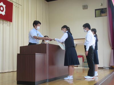 各学年の代表生徒が「2学期の抱負」を発表しました。学習・部