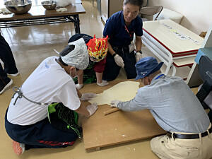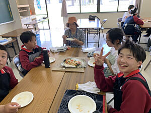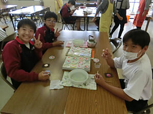自然教室も2日目になりました。ボランティアの方にお手伝いいただき、午前中は「ふれあい活動」を行いました。ピザやラーメン、まんじゅうなどいろいろなものに挑戦しました。午後は、「創作活動」を行いました。芸術的なカラーキャンドルやはにわ、七宝焼きなど世界で一つだけの作品作りに没頭できました。夜は、お楽しみの「長沼フェスティバル」です。どのグループも思考をこらし、楽しい劇や踊りを披露していました。ハードな一日でしたが楽しい思い出が作れました。
