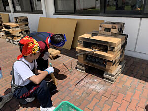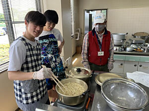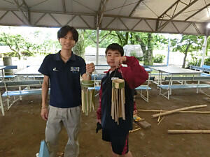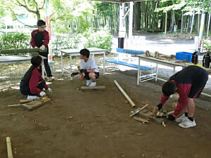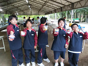 自然教室も3日目をむかえました。今日は、野外炊さんになります。センターの職員の方の説明をよく聞き、活動を開始しました。手際よく野菜を切る生徒や火起こしをする生徒など、見ていて感心するほどでした。完成を見ることはできませんでしたが、きっとおいしいカレーができたことでしょう。
