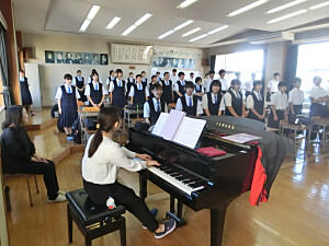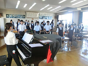 本日は、芳賀地区音楽祭です。朝早くから集合して練習を行っています。素晴らしい歌声を響かせていました。本番も緊張せず頑張ってきてください。発表は、11番目(10:50頃)の予定です。