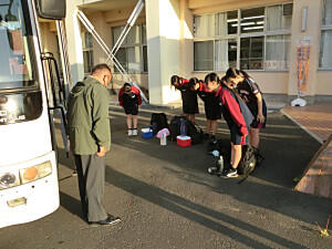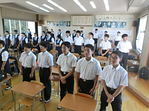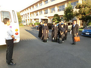本日より、郡市新人各種大会がはじまりました。今日は、バレーボール部と剣道部が参加します。朝早くから集合して出発しました。緊張せず、いつもの力を発揮して、県大会を目指して頑張ってください。明日は野球部も参加します。
