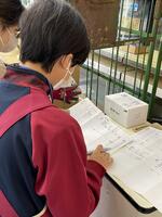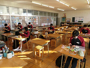 給食の時間に、給食センターの方が給食の様子を見に来てくださいました。たくさんお褒めの言葉をいただきました。この日は「十五夜給食」でした。
