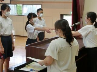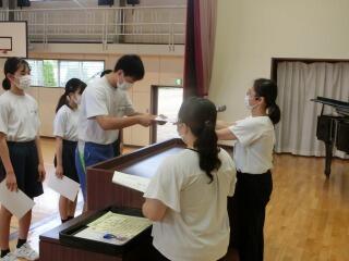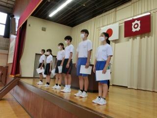 9月1日 始業式及び学級委員任命式 投稿日時 : 2022/09/01 長沼中システム管理者 2学期始業式と学級委員の任命式を行いました。 各学年の代表が2学期の抱負を発表しました。(左は1年生、右は2年生) 3年生の代表による2学期の抱負発表 2学期の学級委員任命式の様子