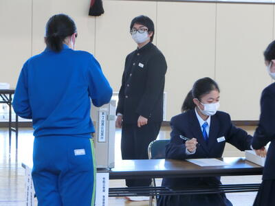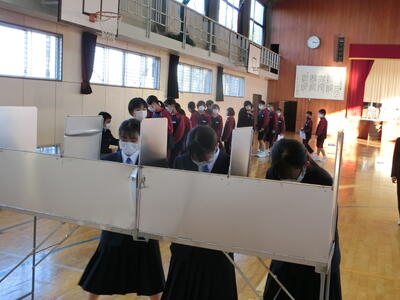 12月3日 生徒会立会演説会・役員選挙 投稿日時 : 2021/12/13 長沼中システム管理者 来年度の生徒会役員を決める立会演説会と選挙がありました。 立候補者も聴衆も、真剣そのものです。 真岡市選挙管理委員会から記載台や投票箱をお借りし、生徒たちは 本番さながらの選挙を体験しました。