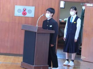 司会は中央委員が務めました 1年生も資料を見ながらよく話を聞いていました