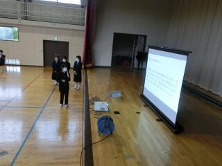 環境安全委員の生徒が、映像を使ってクイズを出題しました。