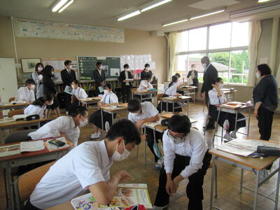 育委員の皆様が大勢来校されました。授業や生徒たちの学習活動