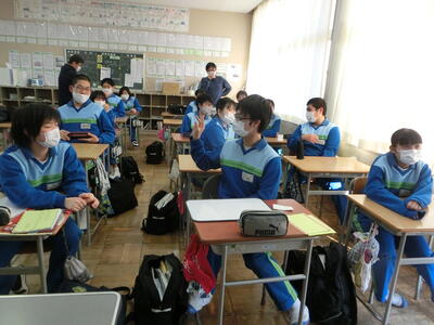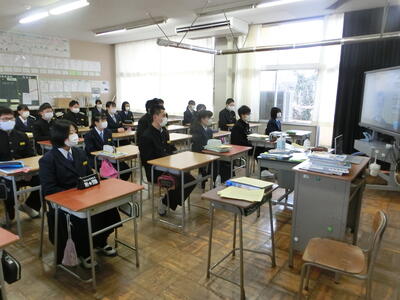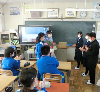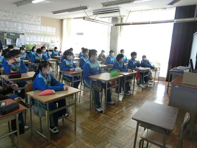 1・2年生から3年生に向けた感謝のメッセージ動画の上映が行われました。