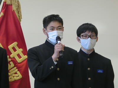 代表生徒は、よりよい学校にするため、「平和と公正をすべての人に」という目標を最優先に取り組んでいきたいと発表しました。