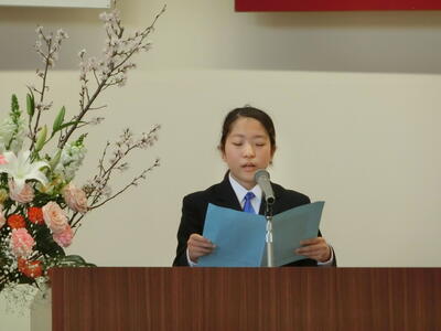3年生代表あいさつでは今まで支えてくださった多くの方に感謝をしたいという言葉がありました。
