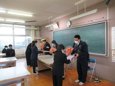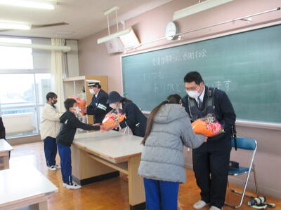 日頃お世話になっている交通指導員の方へお礼の手紙と花束を贈呈しました。