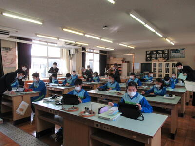 「1人1台端末を活用した授業の実践」をテーマとして、今回は、技術と理科の授業が行われました。