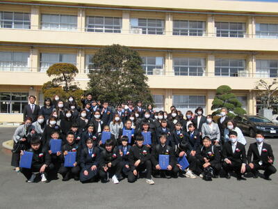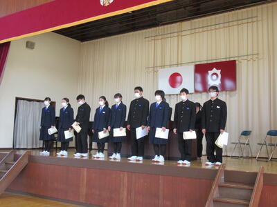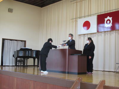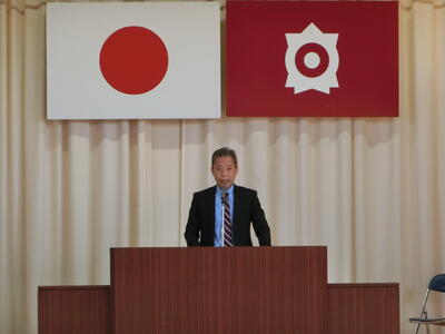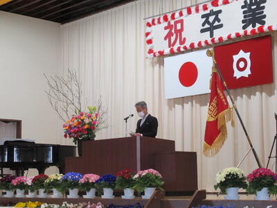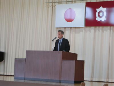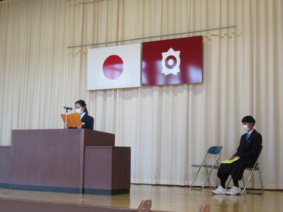 校長式辞では今年度を振り返り、現状に満足せず、常に向上心をもって行動することの大切さについての話がありました。