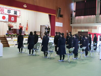 式終了後、卒業生から先生方や保護者の方々に感謝の気持ちを込めた歌が送られました。