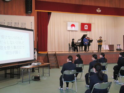 作曲者や曲についての解説が映像で流され、生徒たちも興味を