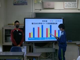 いじめ防止サミットを開催しました。事前に各クラスで話合いを行い、その内容を発表しながら、いじめのない学校生活について考えました。