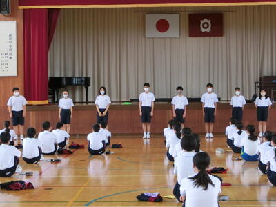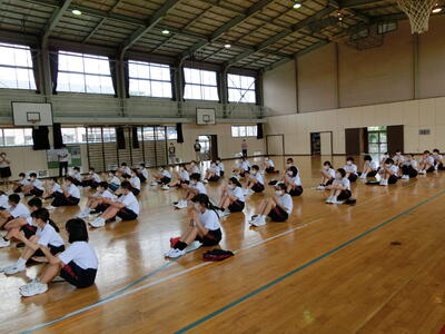 来月5日の郡市総体陸上競技大会をはじめに、来週から郡市総体各種大会が行われます。3年生にとっては最後の大会。それに向けての意気込みを発表し合いました。