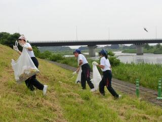 1,2年生は鬼怒川河川敷を清掃しました。