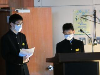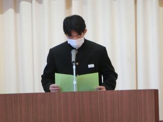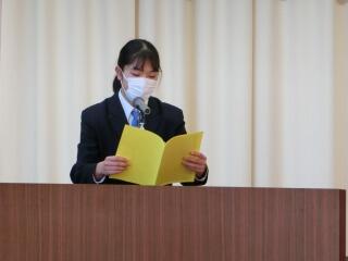 2学期終業式を迎えました。各学年の代表の生徒に、2学期の反省と3学期の豊富を発表してもらいました。
