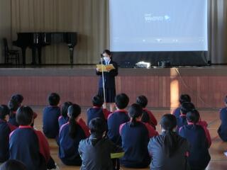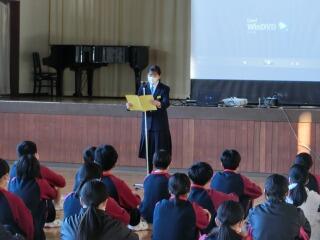福祉委員会が運営を担当し、人権委員会を開催しました。人権作文を発表したり、いじめ防止のためのビデオを視聴したりしました。