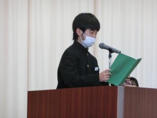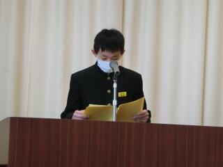 3学期始業式が行われました。各学年の代表が3学期の抱負を発表しました。