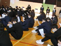 2学期最後の終業式が行われました。校長先生は、2学期をしっかり振り返り、3学期に生かすことと、年中行事についての説明をお話しされました。その後、各学年の代表生徒が2学期の反省を発表しました。3年生は、冬休み中に私立高校の受験を迎えます。体調を整え、全力を出し切ってほしいと願っています。