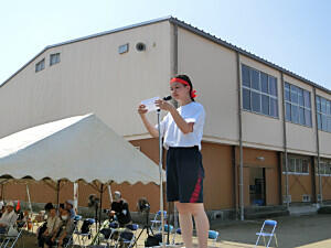 いよいよ運動会が始まりました。両組団長の元気な選手宣誓で幕を開けました。優勝目指し、ケガに気をつけて頑張りましょう。