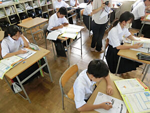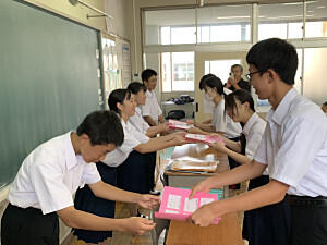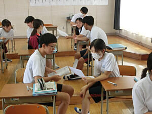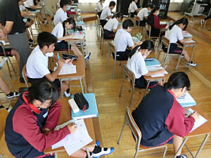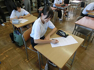 3年生による総合的な学習の時間の発表会を行いました。3年生は、「地域創生:地域を生かす、地域を伸ばす」 ~日本の文化、外国の文化から地域へ~ という課題をいろいろな手段で探究し、まとめました。今回は、修学旅行において、日本の文化を多く学んできたことを工夫し発表しました。2年生も真剣に発表を聞き、感想を書いていました。