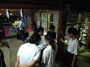 太々神楽の練習を長沼八幡宮で行いました。たくさんの生徒が参加し、役割の分担や練習を行いました。